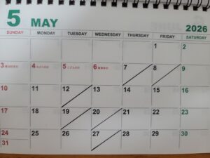 5月の営業日です。